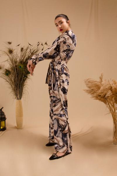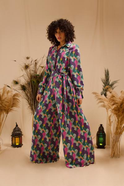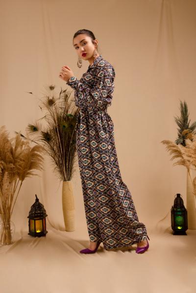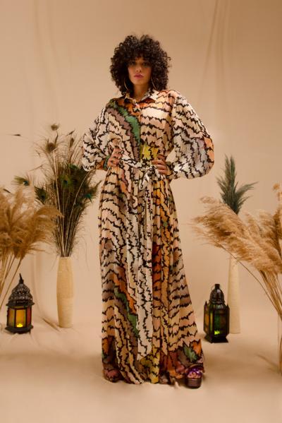 Kırık Renkli Halkalı Kuşaklı Elbise